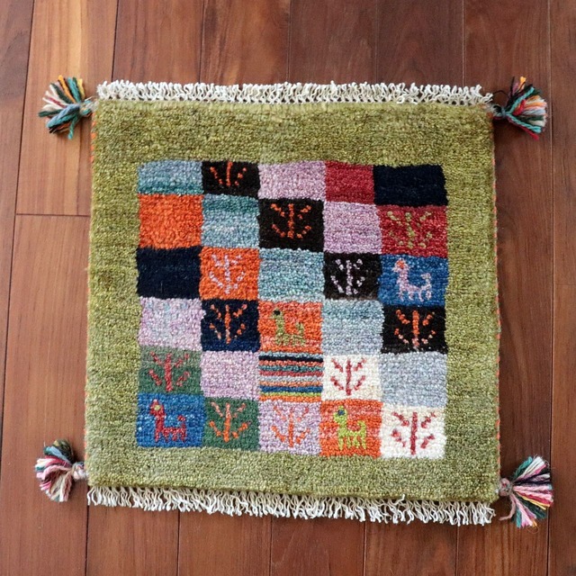 【f1266】 ギャッベ(ギャベ) 約40×40㎝ [Iran/Shiraz]