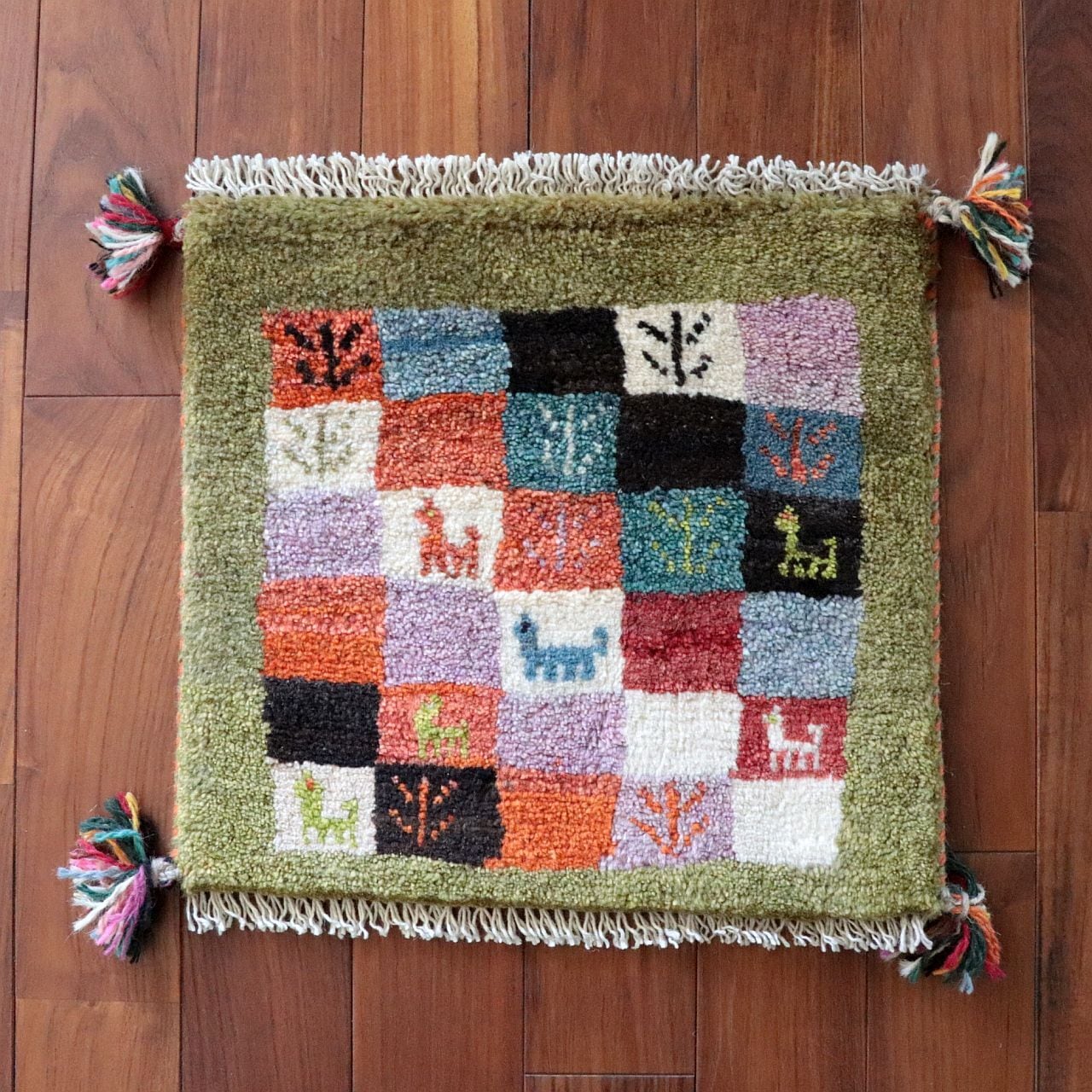 【f1255】 ギャッベ(ギャベ) 約40×40㎝ [Iran/Shiraz]