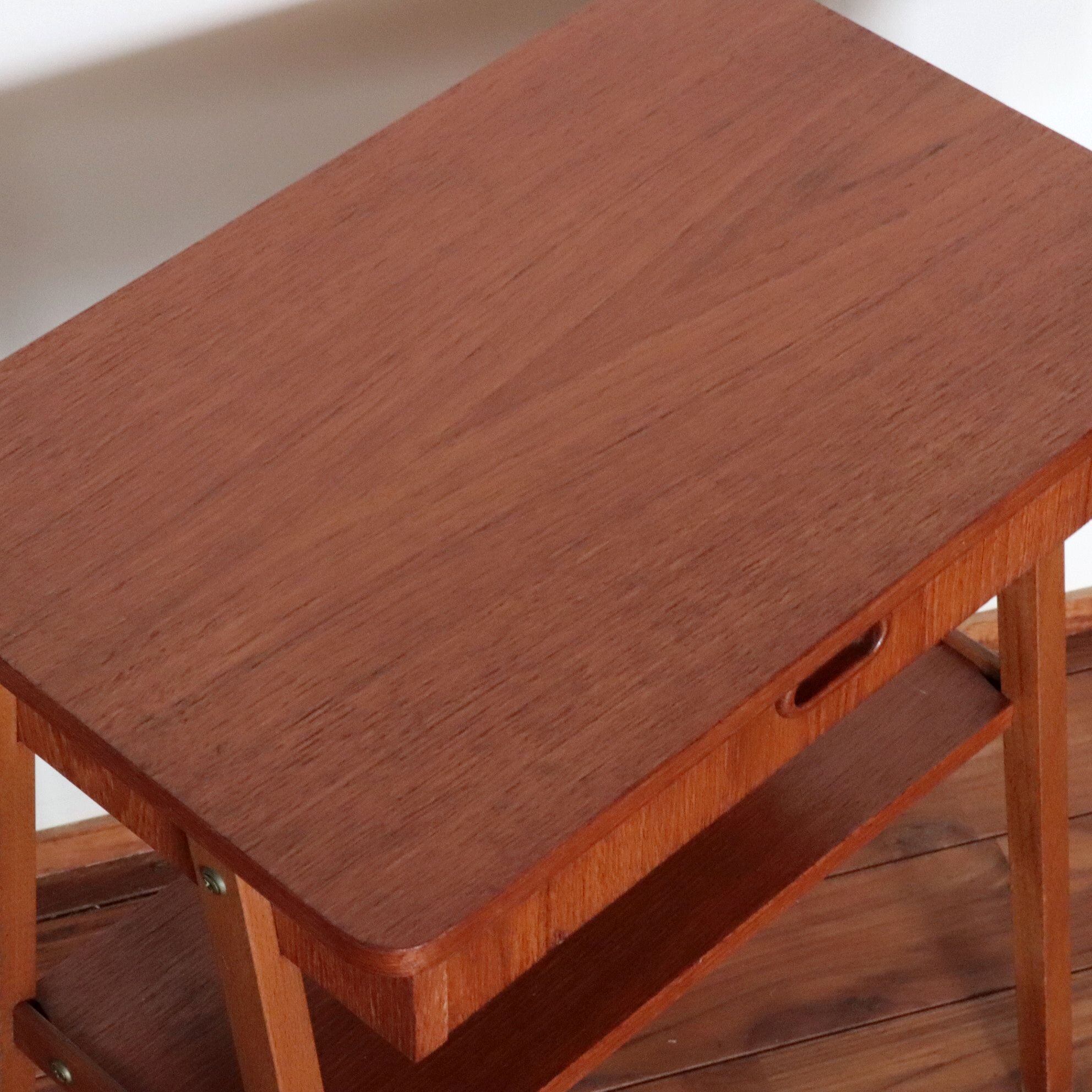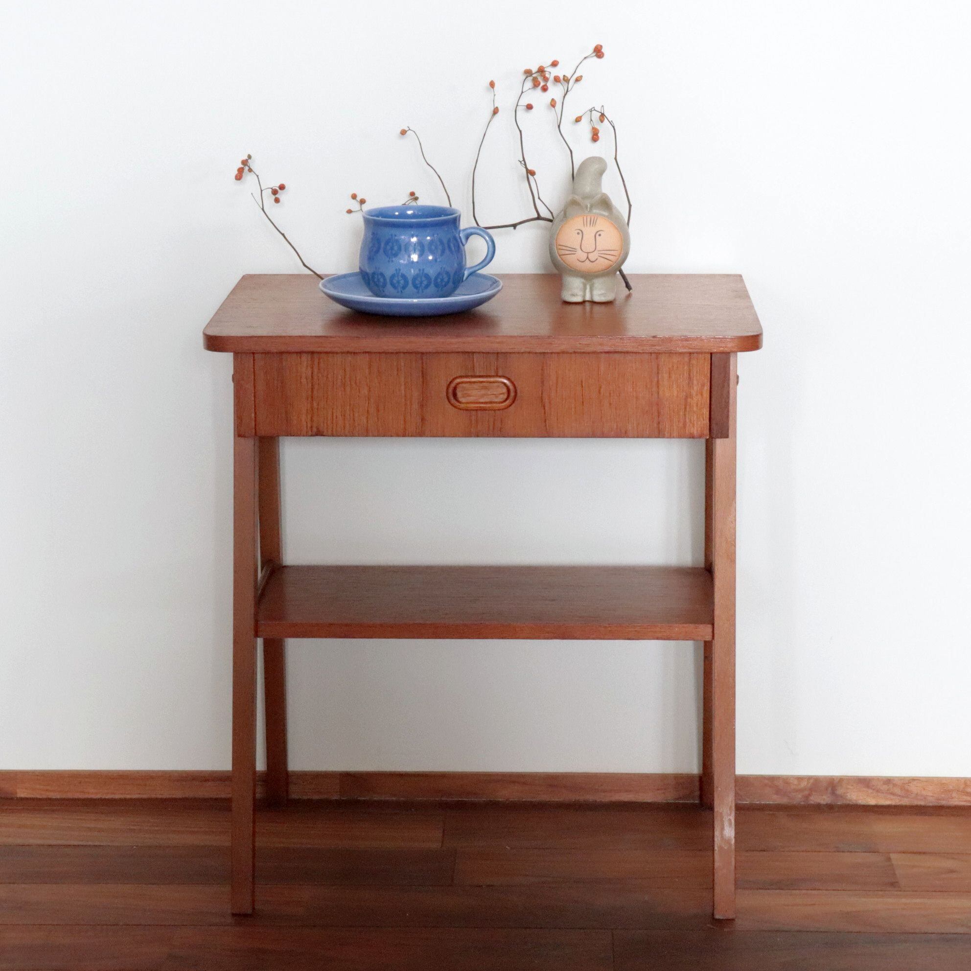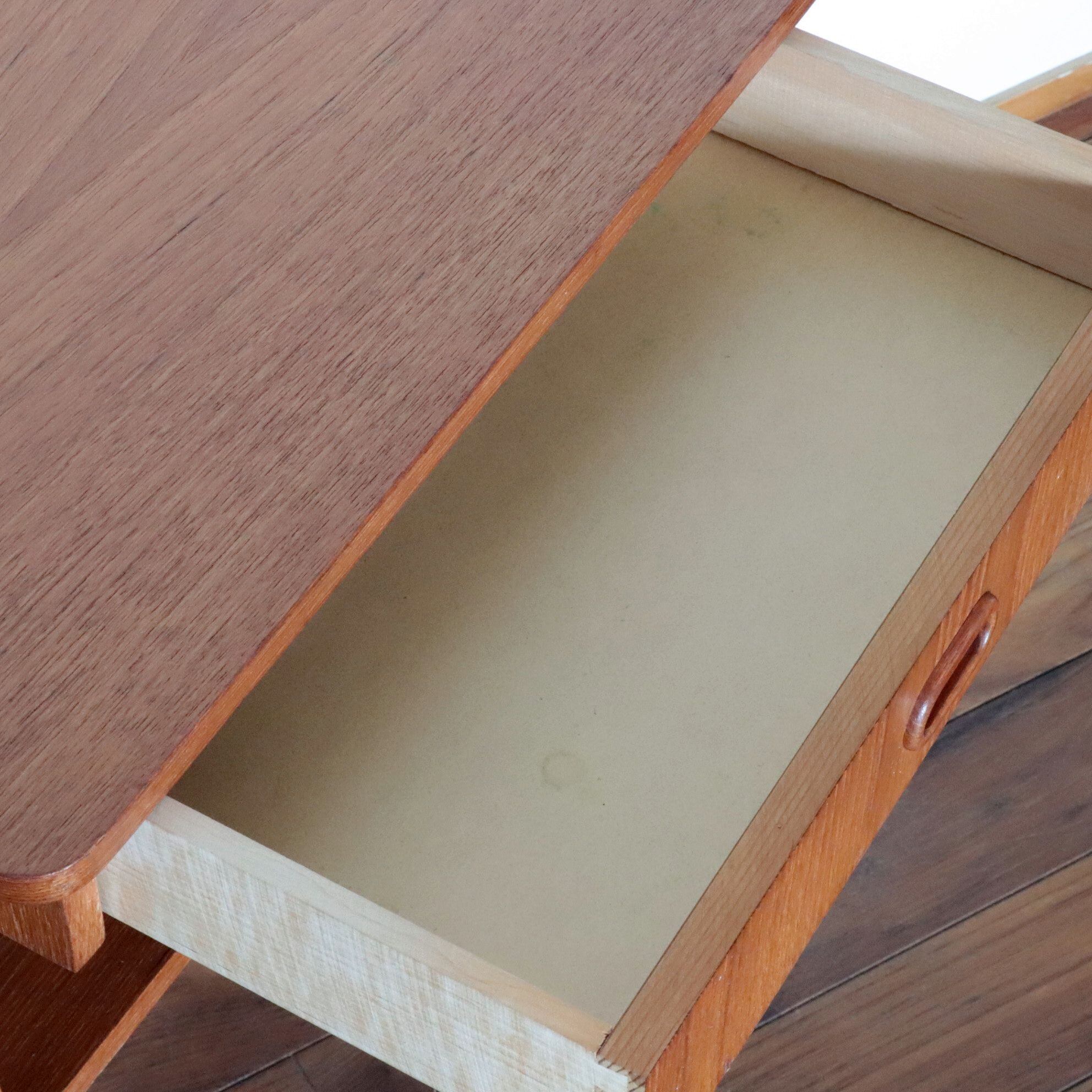 コンパクトながら機能性に優れた、デンマーク製のヴィンテージサイドテーブル。1980年代に製作された本品は、幅45㎝の省スペース設計で、ベッドサイドやソファ横、玄関先などにもすっきり収まります。