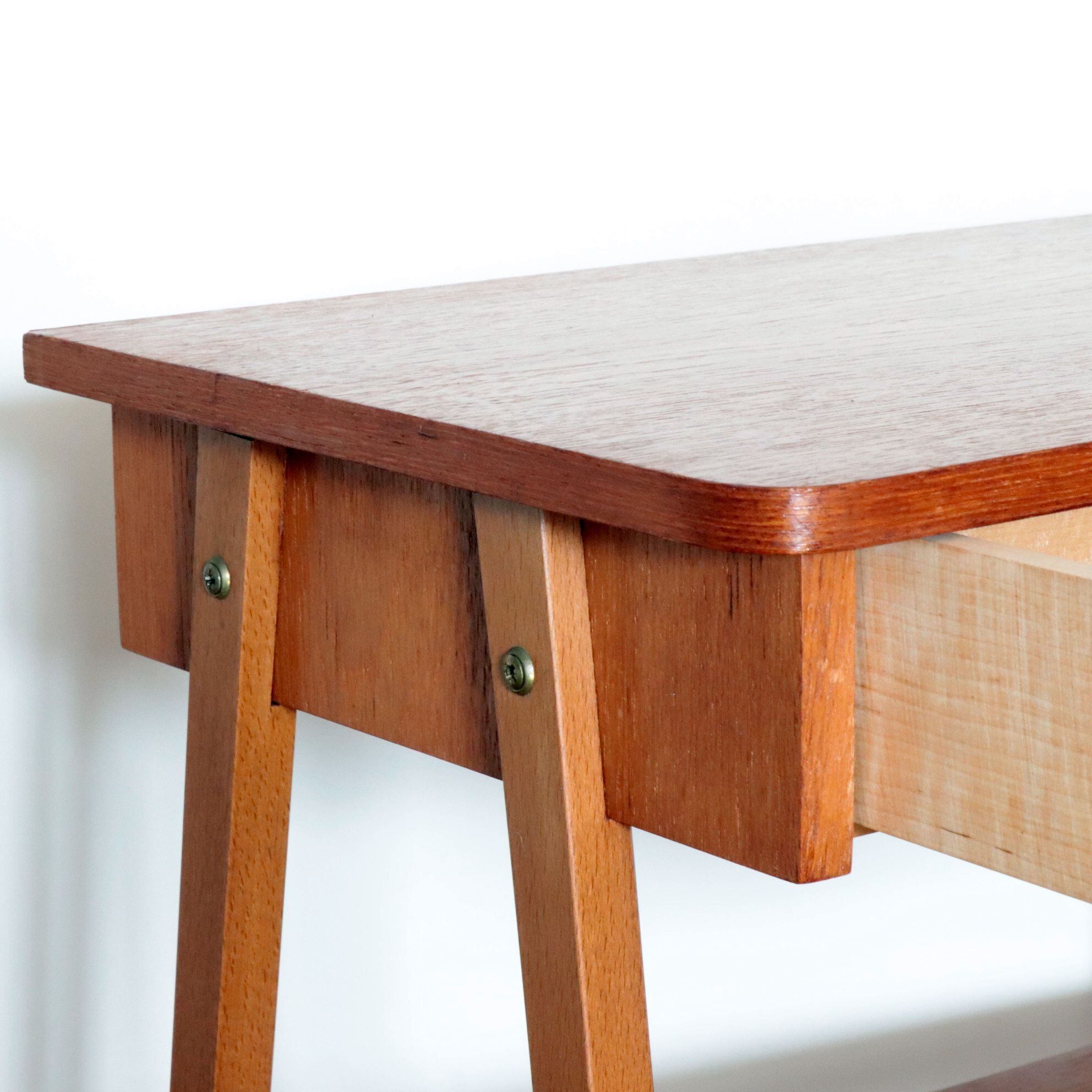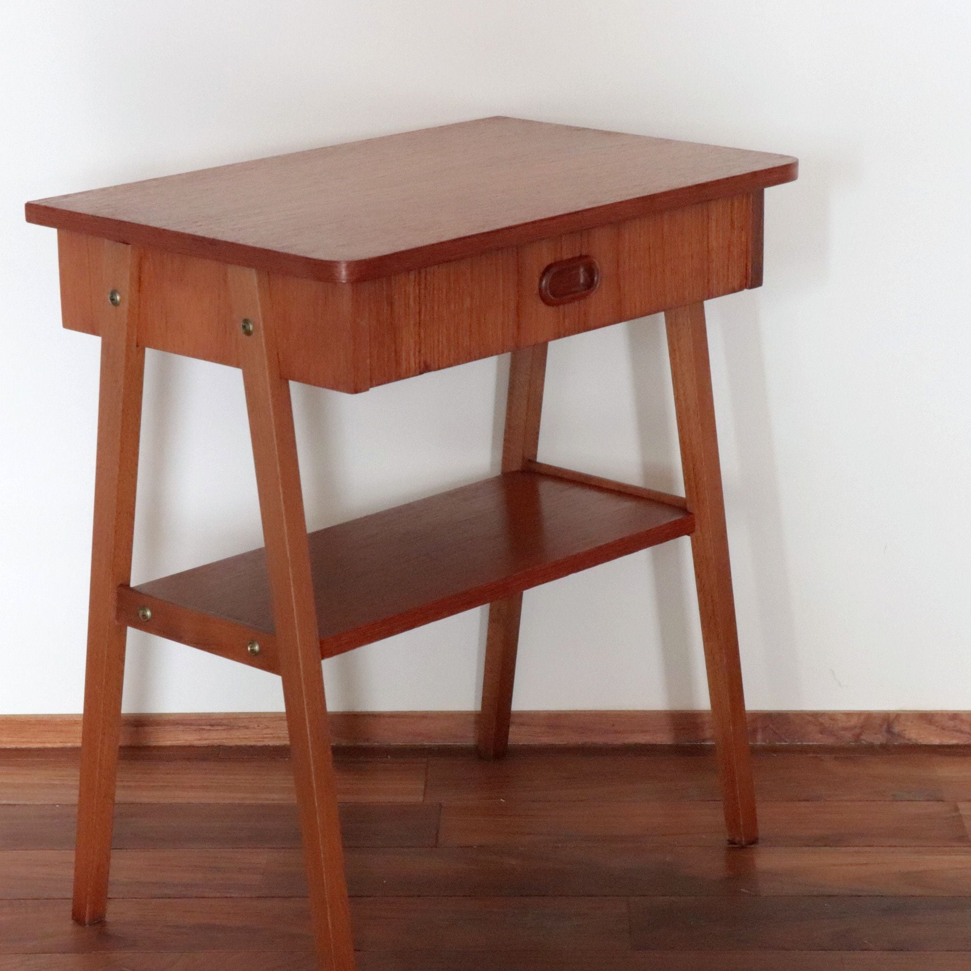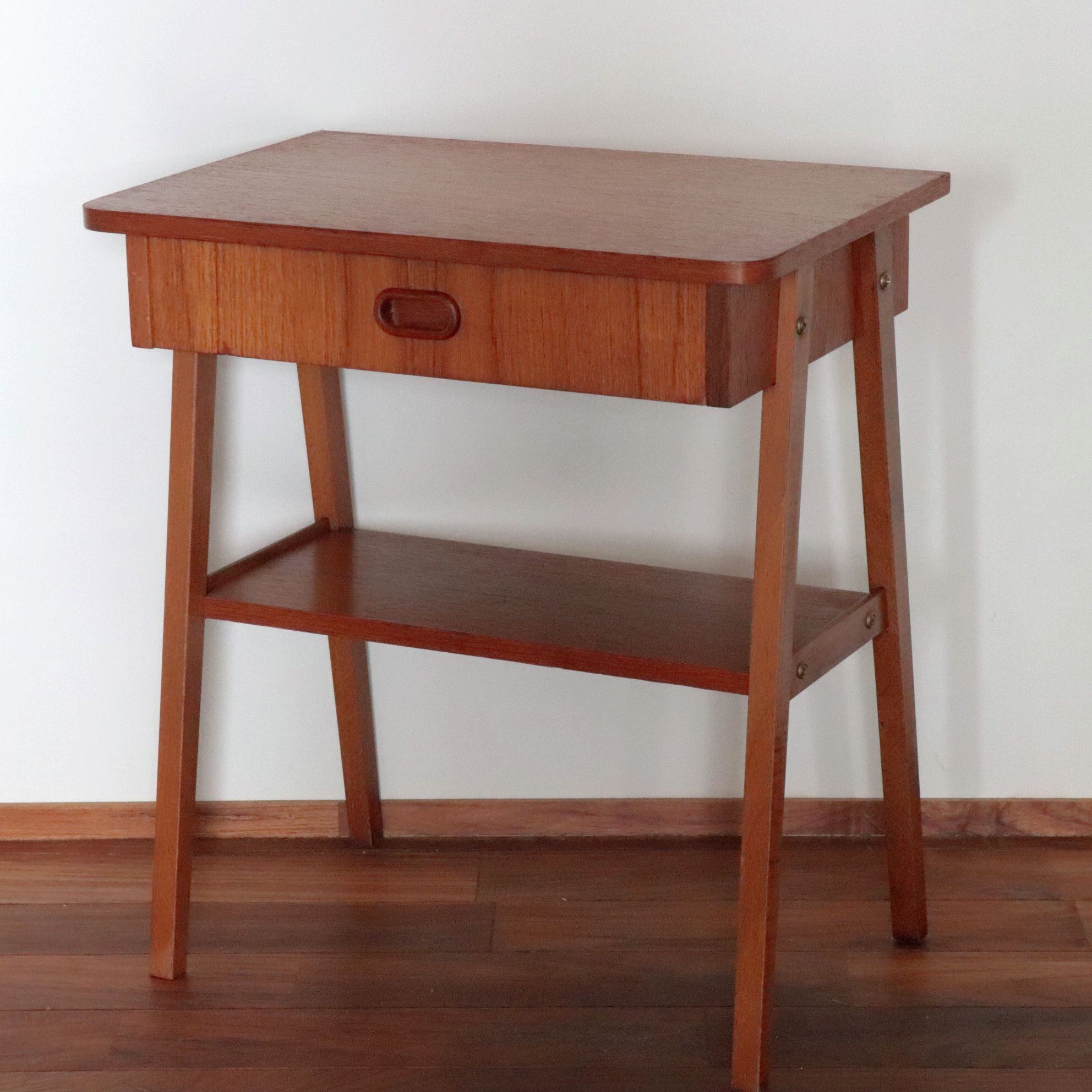 コンパクトながら機能性に優れた、デンマーク製のヴィンテージサイドテーブル。1980年代に製作された本品は、幅45㎝の省スペース設計で、ベッドサイドやソファ横、玄関先などにもすっきり収まります。