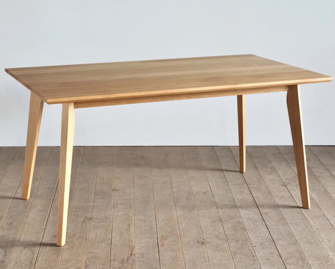 総無垢材で仕立てたダイニングテーブル。天板のエッジにはシャープな面取りを施し、木の質感を引き立てながら、空間に軽やかな印象を添えています。4つのデザインと24サイズのバリエーションから、一台ずつ丁寧にオーダー製作しているシリーズです。