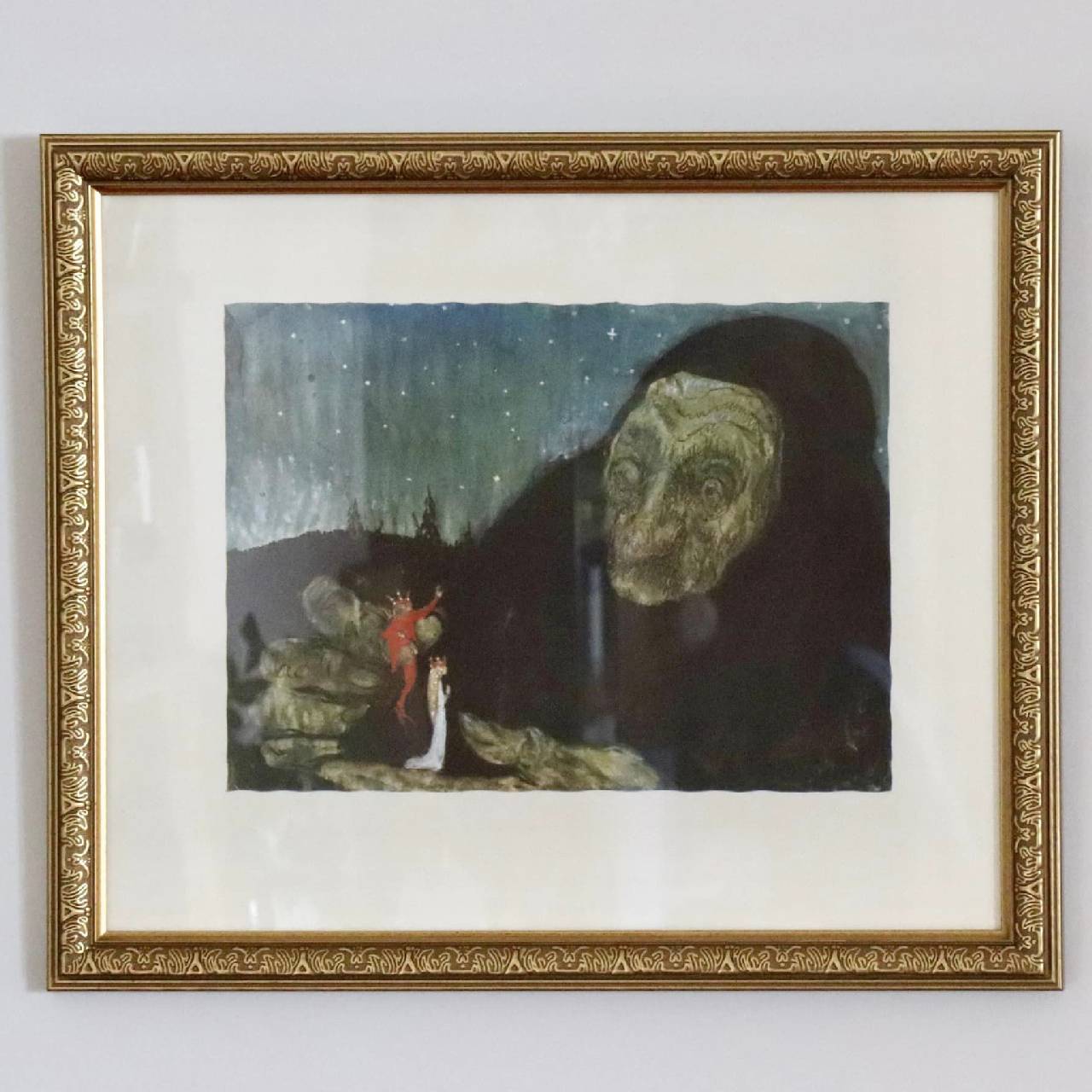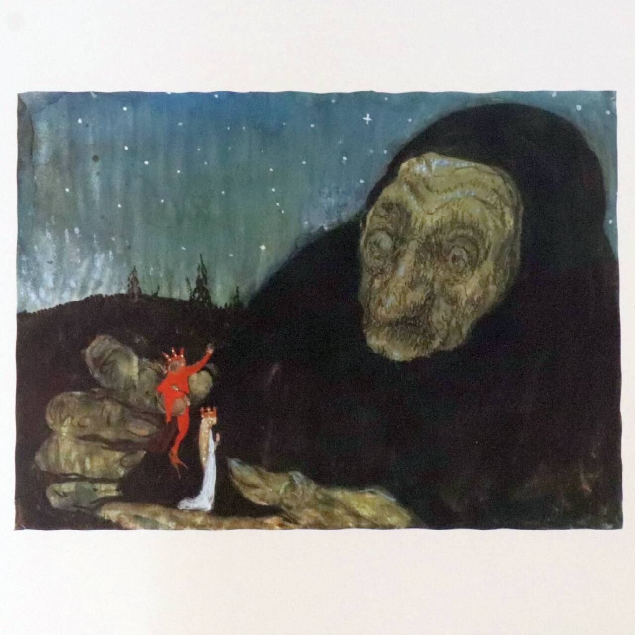 王子と王女がトロールを訪れたシーンを描いたもので、Bland tomtar och trollに収蔵された作品のうちの1点と思われます。