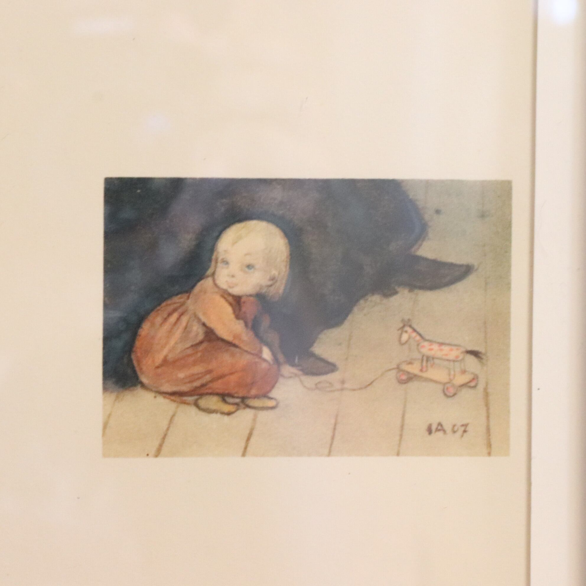 絵はそれぞれLillan(左上):リッラン/I himmelrikets trappa(右上):天国への階段/ Lillan och hasten(右下):リッランの慌ただしい日々/ Dockornas dans(左下):人形の踊り と題名が付けられています。後に絵本の主人公となるアロセニウスの愛娘リッランを描いた連作です。