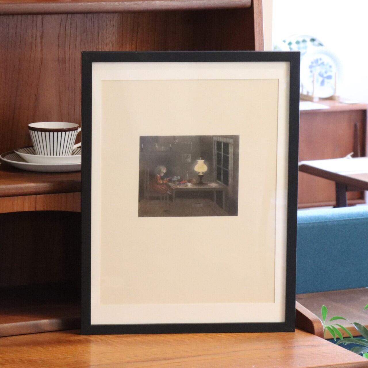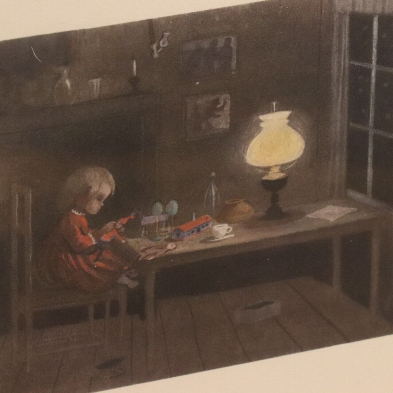 アロセニウスが愛娘リッランの遊ぶ様子を描いた静かな作品。夜、穏やかなライトのもとで人形遊びをするリッラン。親の優しい眼差しを感じる作品です。