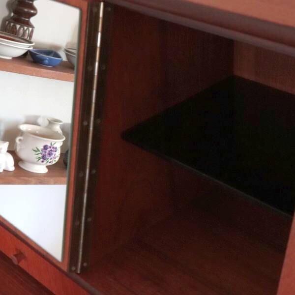 扉の内側にはミラーが仕込まれており、デスク・収納・ドレッサーと1台で多様な用途がお楽しみいただける家具です。ミラーのある収納の可動棚はガラス棚となっており、化粧品など木製品にダメージを与える可能性が高めのものでも使いやすいよう製作されています。
